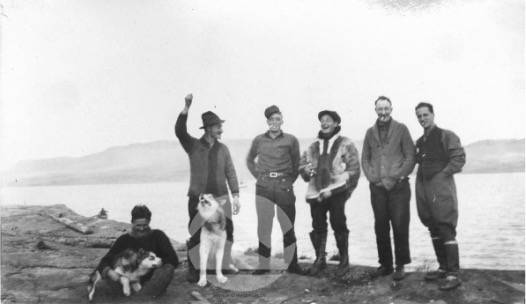 Godsell, district manager Hall and district inspector Clarke had been present at the famous trial of the accused Inuit murders at Herschel Island in July 1923. The trial, which ended with a guilty verdict for both, concluded with the departure of the judicial party by schooner to reach an upstream river steamer at Aklavik. Godsell and the HBC employees travelling to the Tree Island Post, the planned start of the expedition, awaited the arrival of the HBC supply ship Lady Kindersley from Vancouver at Herschel Island. She arrived on August 3 and after discharging and transferring cargo sailed to the east. On board (as mentioned by Godsell in his books Arctic Trader and They Got Their Man) were Pete Norberg, Otto Torrington and HBC company accountant and replacement Tree River post manager R.C. MacGregor. Godsell made no mention of Henry Bjorn who was probably also on board or of HBC district inspector Clarke. That Clarke was aboard was confirmed by Kindersley’s radio officer Reginald Harold Fricker. Fricker also noted that Danish photographer Leo Hansen, who was scheduled to join Knut Rasmussen 5th Thule Expedition at Kent Peninsula, was also on board.
