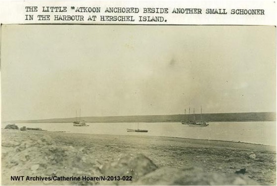 Returning from Bernard Harbour, Allan encountered the missionary party of the Anglican church, Herbert Girling, G.E. Merritt, William Hoare and Pouchina (described as “an Eskimo helper”) whose vessel the Atkoon had also been at Herschel Island. The Atkoon had been disabled near Clifton Point when he stopped to offer assistance even though his own vessel, El Sueño had been badly damaged.