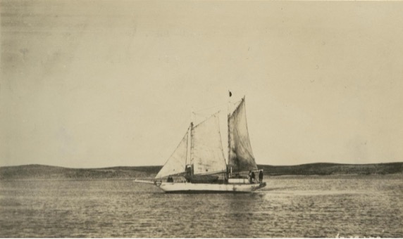 A iconic photograph shows El Sueño leaving Bernard Harbour under sail in the late fall of 1915. This was presumably Allan heading back west on his trading and trapping mission.